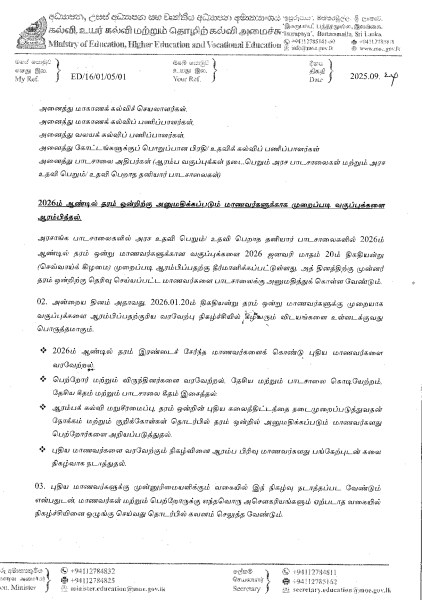 09/10/2025Sri Lanka Tamil Newsகல்வி அமைச்சின் விசேட சுற்றிக்கை!வாசிக்ககல்வி அமைச்சின் விசேட சுற்றிக்கை!