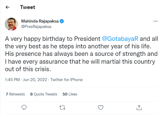 20/06/2022Sri Lanka Tamil Newsஜனாதிபதியின் பிறந்த நாளுக்கு சீனா நேரடியாக வாழ்த்துவாசிக்கஜனாதிபதியின் பிறந்த நாளுக்கு சீனா நேரடியாக வாழ்த்து