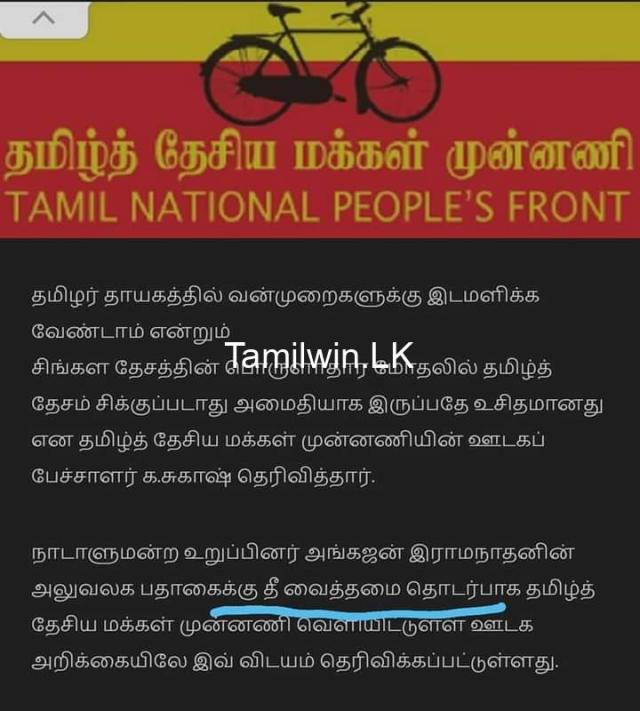 11/05/2022Sri Lanka Tamil Newsஅங்கஜன் ராமநாதனின் பதாகைகளை தீ வைத்துக் கொழுத்தியது நாங்களே: தமிழ் தேசிய மக்கள் முன்னணி ஒப்புதல்வாசிக்கஅங்கஜன் ராமநாதனின் பதாகைகளை தீ வைத்துக் கொழுத்தியது நாங்களே: தமிழ் தேசிய மக்கள் முன்னணி ஒப்புதல்