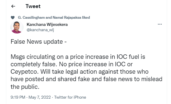 07/05/2022Sri Lanka Tamil Newsஎரிபொருட்களின் விலையில் மீண்டும் மாற்றம்-எரிசக்தி அமைச்சர் பதில்!வாசிக்கஎரிபொருட்களின் விலையில் மீண்டும் மாற்றம்-எரிசக்தி அமைச்சர் பதில்!