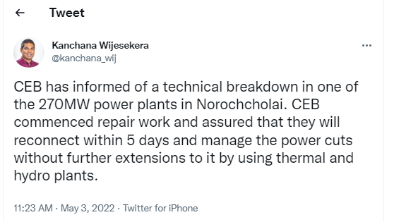 03/05/2022Sri Lanka Tamil Newsநாட்டில் மீண்டும் நீண்ட நேர மின்தடையா?? விசேட அறிவிப்பு.வாசிக்கநாட்டில் மீண்டும் நீண்ட நேர மின்தடையா?? விசேட அறிவிப்பு.