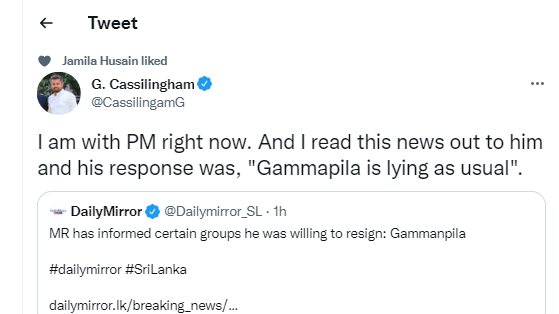 25/04/2022Sri Lanka Tamil Newsமஹிந்த பதவி விலகல்; பிரதமரின் இணைப்பு செயலாளரும் தகவல்!வாசிக்கமஹிந்த பதவி விலகல்; பிரதமரின் இணைப்பு செயலாளரும் தகவல்!
