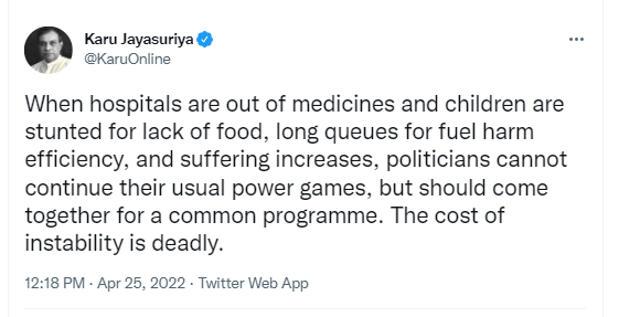 25/04/2022Sri Lanka Tamil Newsஅரசியல்வாதிகள் தங்கள் அதிகார விளையாட்டுகளைத் தொடர முடியாது- கரு கண்டனம்.வாசிக்கஅரசியல்வாதிகள் தங்கள் அதிகார விளையாட்டுகளைத் தொடர முடியாது- கரு கண்டனம்.