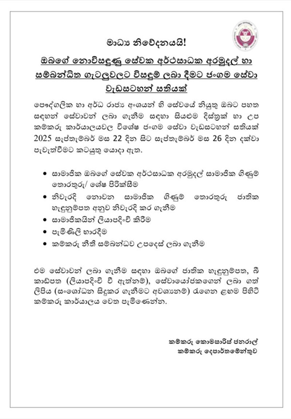 18/09/2025Sri Lanka Tamil Newsதொழில் திணைக்களத்தின் நடமாடும் சேவை!வாசிக்கதொழில் திணைக்களத்தின் நடமாடும் சேவை!
