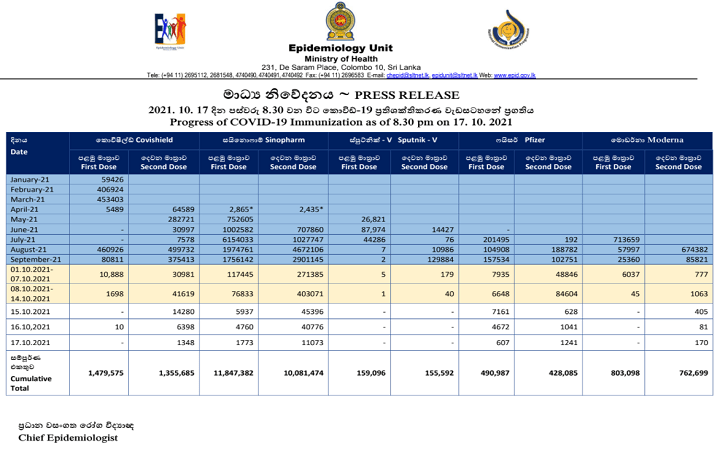 18/10/2021Sri Lanka Tamil Newsஇலங்கைக்கு மேலுமொரு தொகுதி பைஸர் தடுப்பூசிகள் கொண்டுவரப்பட்டனவாசிக்கஇலங்கைக்கு மேலுமொரு தொகுதி பைஸர் தடுப்பூசிகள் கொண்டுவரப்பட்டன