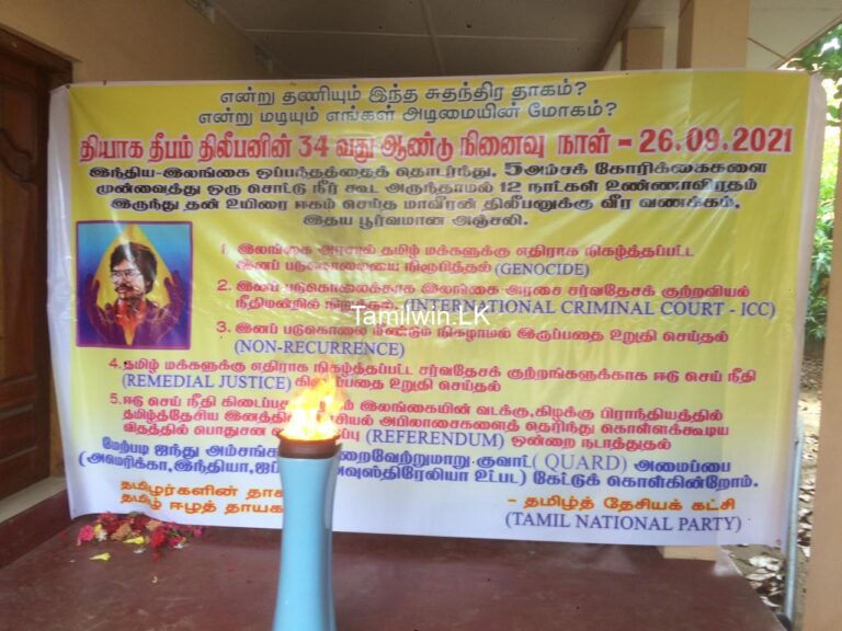 26/09/2021Sri Lanka Tamil Newsதியாகத்தின் பிள்ளை திலீபனின் நினைவு நாள் இன்று அனுஷ்டிப்புவாசிக்கதியாகத்தின் பிள்ளை திலீபனின் நினைவு நாள் இன்று அனுஷ்டிப்பு