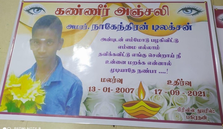 19/09/2021Sri Lanka Tamil Newsமன்னாரில் திருட்டு பழி சுமத்திய 14 வயது சிறுவன் தற்கொலை- கொலை என தாயார் சந்தேகம்!வாசிக்கமன்னாரில் திருட்டு பழி சுமத்திய 14 வயது சிறுவன் தற்கொலை- கொலை என தாயார் சந்தேகம்!