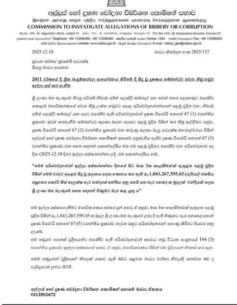 12/12/2025Sri Lanka Tamil Newsகப்ரால் மீதான வழக்கில் உண்மையில் அவர் விடுதலையா? நிபந்தனையை வெளியிட்ட ஆணைக்குழுவாசிக்ககப்ரால் மீதான வழக்கில் உண்மையில் அவர் விடுதலையா? நிபந்தனையை வெளியிட்ட ஆணைக்குழு