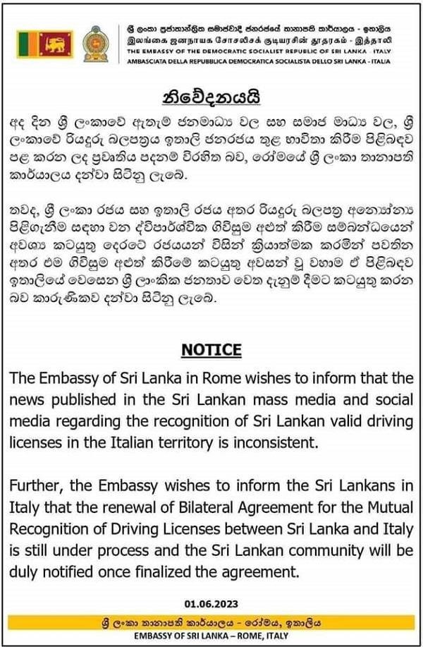03/06/2023Sri Lanka Tamil Newsஇலங்கையின் ஓட்டுனர் உரிமங்களை இத்தாலியில் பயன்படுத்துவது குறித்து வெளியாகியுள்ள செய்தி!வாசிக்கஇலங்கையின் ஓட்டுனர் உரிமங்களை இத்தாலியில் பயன்படுத்துவது குறித்து வெளியாகியுள்ள செய்தி!