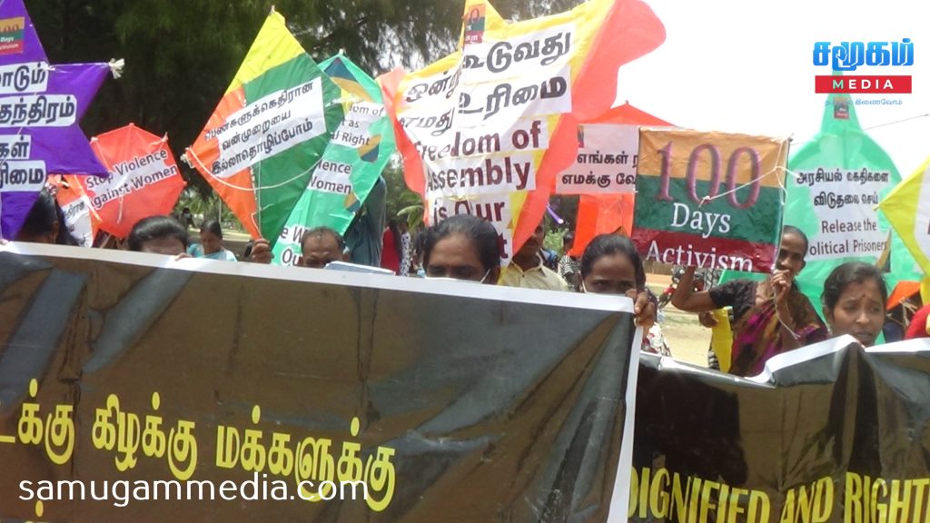 வடக்கு கிழக்கு ஒருங்கிணைப்பு குழுவின் நெறிப்படுத்துனர் கண்டுமணி லவகுசராசா தலைமையில் வடக்கு கிழக்கில் உள்ள மாவட்டங்கள் அனைத்திலும் சுழற்சி முறையில் 100 நாட்கள் செயல் முனைவு போராட்டமானது மேற்கொள்ளப்பட்டு வருகிறது.