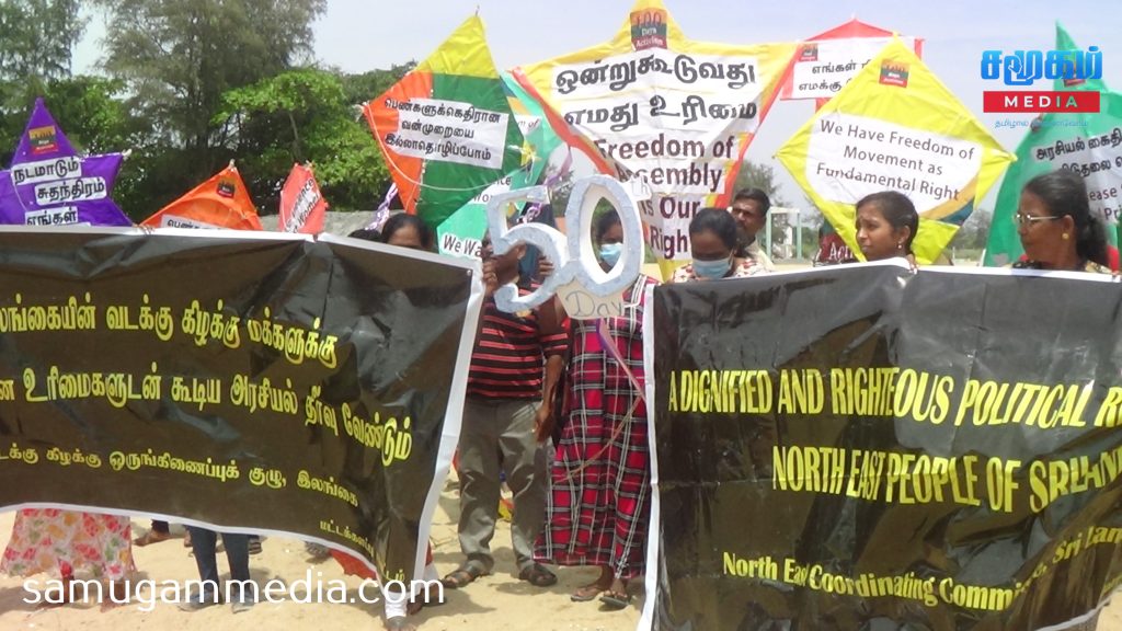 தமிழ் மக்களுக்கான கௌரவமான அரசியல் உரிமையை வலியுறுத்தி வடக்கு கிழக்கு ஒருங்கிணைப்பு அமைப்பின் ஏற்பாட்டில் முன்னெடுக்கப்பட்டு வரும் 100 நாள் செயல் முனைவுப் போராட்டத்தின் 50 ஆவது நாள் நிகழ்வுகள் இன்று காலை (19) மட்டக்களப்பு கல்லடி கடற்கரைப் பகுதியில் இடம்பெற்றது.