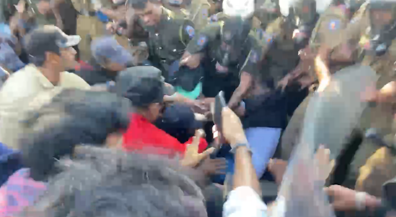 போராட்டக்காரர்களை கலைக்க பொலிஸார் கண்ணீர் புகை மற்றும் தண்ணீர் தாங்கி பிரயோகத்தை மேற்கொண்டதால் அங்கு பதற்றமான சூழ்நிலை ஏற்பட்டுள்ளது.
