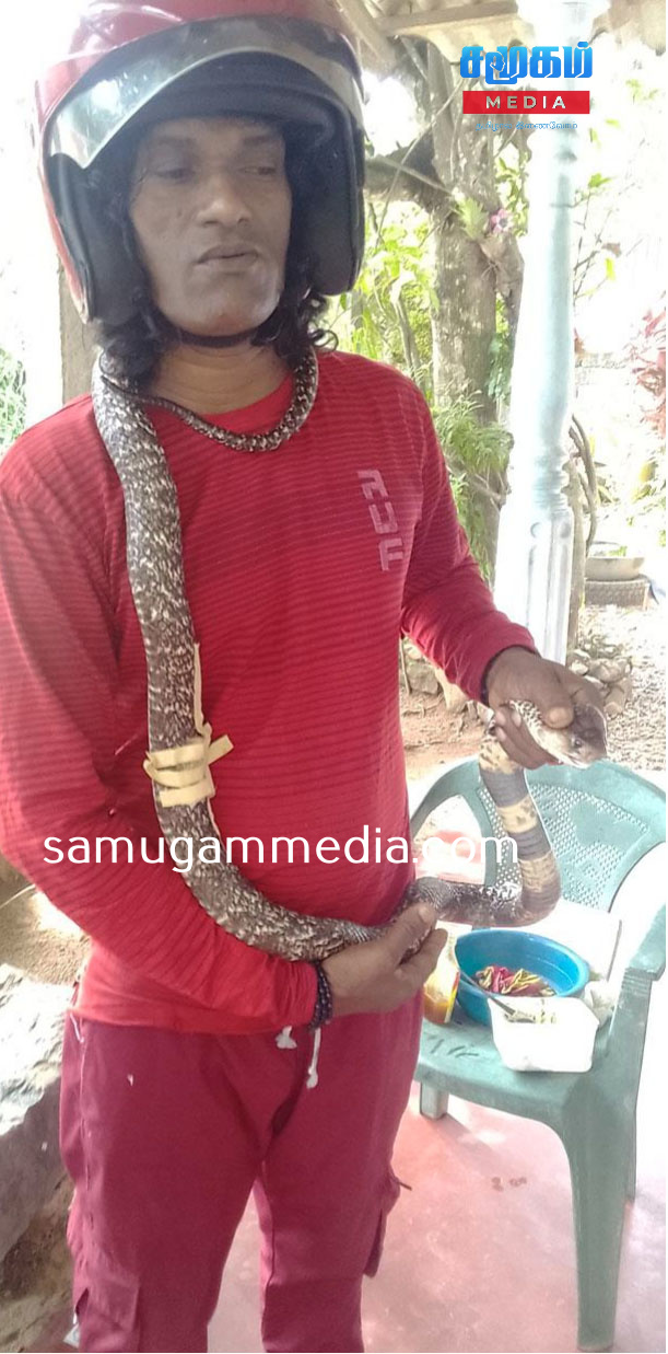 பாம்புகளைப் பிடித்து காட்டுக்குள் பத்திரமாக விடுகின்ற பலப்பிட்டியைச் சேர்ந்த W.A.ஜாக்சன் பிடிபட்ட மலைப்பாம்பின் உடலில் உள்ள நீர்க்கட்டியை அகற்றி பத்திரமாக மீண்டும் காட்டுக்குள் விட்டுள்ளார்.