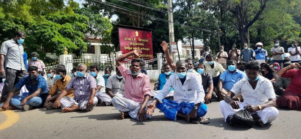யாழ். மாவட்ட செயலகம் முன்பாக போராட்டகாரர்கள் யாழ்ப்பாணம் – கண்டி நெடுஞ்சாலையை வழி மறித்து சில மணிநேரம் போராட்டத்தை முன்னெடுத்தனர். அதனால் போக்குவரத்து சில மணி நேரம் தடைப்பட்டு இருந்தது.
