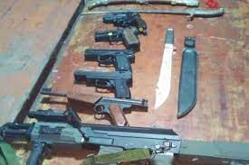 மீட்கப்பட்ட ஆயுதங்களில் நான்கு கைத்துப்பாக்கிகள், ஒரு ரிவால்வர், இரண்டு வாள்கள், ஒரு ரம்போ கத்தி மற்றும் அடையாளம் தெரியாத துப்பாக்கி ஆகியவை இருப்பதாக மூத்த காவல்துறை அதிகாரி ஒருவர் தெரிவித்தார்.