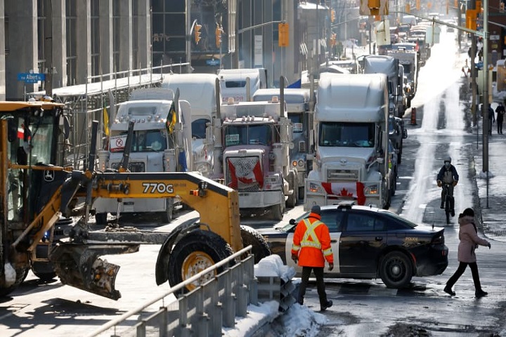 இதனைத்தொடர்ந்து கனடாவில் எல்லை தாண்டி செல்லும் லொறி ஓட்டுநர்கள், கடந்த மாதம் 29ஆம் திகதி தலைநகர் ஒட்டாவாவில் ‘சுதந்திர அணிவகுப்பு’ என்கிற பெயரில் போராட்டத்தை தொடங்கினர்.