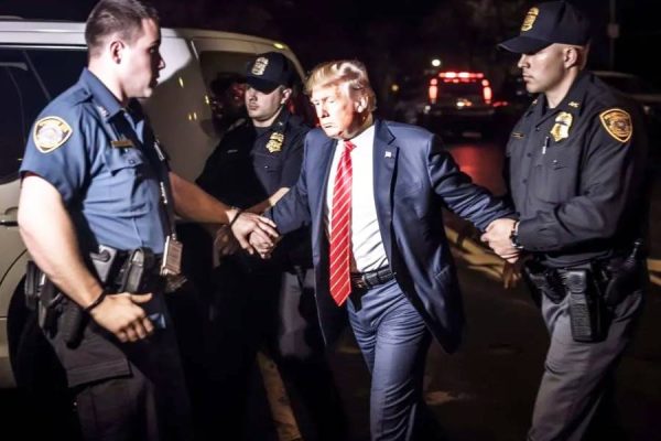 அவர்களது கை ரேகைகள் டிஜிட்டல் முறையில் பதிவு செய்யப்பட்டன. அதே சமயம் ட்ரம்ப் வகித்த உயர் பதவியை கருத்தில் கொண்டு அவருக்கு கை விலங்கு பூட்டப்படவில்லை.