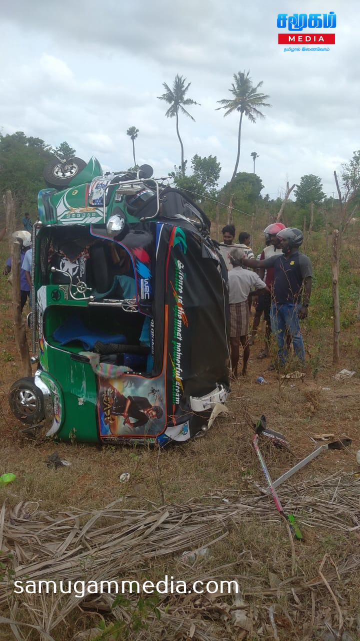 எதிர் எதிர் திசையில் பயணித்துக் கொண்டிருந்த இரு வாகனங்களும் ஒன்றுடன் ஒன்று நேருக்கு நேர் மோதி விபத்துக்குள்ளானதில் முச்சக்கர வண்டி தலைகீழாக புரண்டு சேதமடைந்துள்ளது.