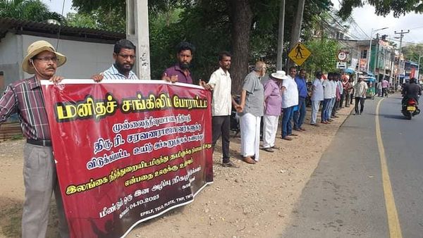 முல்லைத்தீவு நீதிபதி ரீ.சரவணராஜா, பதவி விலகியமை தொடர்பாக யாழில் இன்று(04) மனித சங்கிலிப் போராட்டமொன்று முன்னெடுக்கப்பட்டுள்ளது.