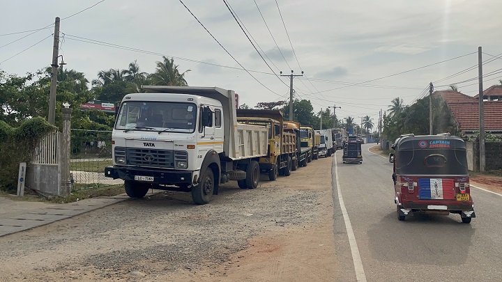 இதன்காரணமாக டிப்பர் வாகனங்கள் மற்றும் மீன் ஏற்றுமதி வாகனங்கள் எரிபொருள் நிரப்பு நிலையங்களில் நீண்ட நேரம் வரிசையில் காணப்படுகின்றன.