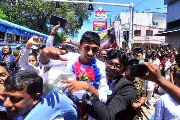 பொலிஸார் மற்றும் மக்கள் பலர் அவருக்கு மாலை அணிவித்ததுடன் அவரை வீதியில் தூக்கிச் சென்றுள்ளனர்.