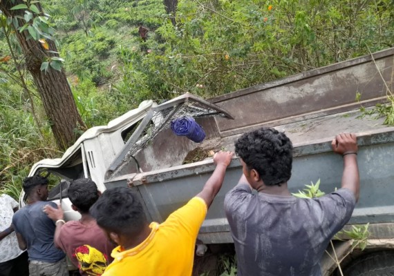 மஸ்கெலியா மின்னா பாதை ஊடாக சென்ற டிப்பர் ரக பாரஊர்தி ஒன்று சுமார் 150 அடி பள்ளத்தில் விழுந்து விபத்துக்குள்ளானது.