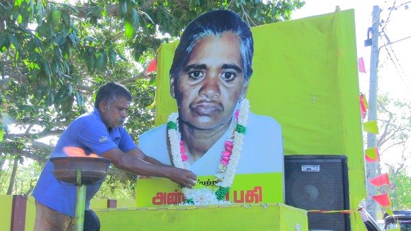 தமிழ்த் தேசிய மக்கள் முன்னணியினால் யாழ்ப்பாணத்தில் ஆரம்பிக்கப்பட்ட அன்னை பூபதியின் திருவுருவப் படம் ஏந்திய வாகன பேரணி 11ம் நாளான இன்று அன்னை உண்ணா விரதம் ஆரம்பித்த மாமாங்கப் பிள்ளையார் ஆலயத்திற்கு வருகைந்ததுடன் அங்கு அவர் உண்ணாவிரதம் இருந்த இடத்தில் அஞ்சலி செலுத்தப்பட்டதுடன் அவரின் திருவுருவப்படத்திற்கும் அஞ்சலி செலுத்தப்பட்டது.