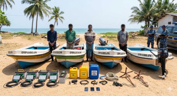 கைது செய்யப்பட்டவர்களிடமிருந்து 04 சிறு படகுகள், வெளி இணைப்பு இயந்திரங்கள், சுமார் 43 லிட்டர் மண்ணெண்ணெய், மின்கலங்கள் (Batteries), நீரில் மூழ்கிப் பயன்படுத்தக்கூடிய 11 மின்விளக்குகள், நங்கூரங்கள் மற்றும் 03 கைபேசிகள் ஆகியவை கைப்பற்றப்பட்டுள்ளன.
