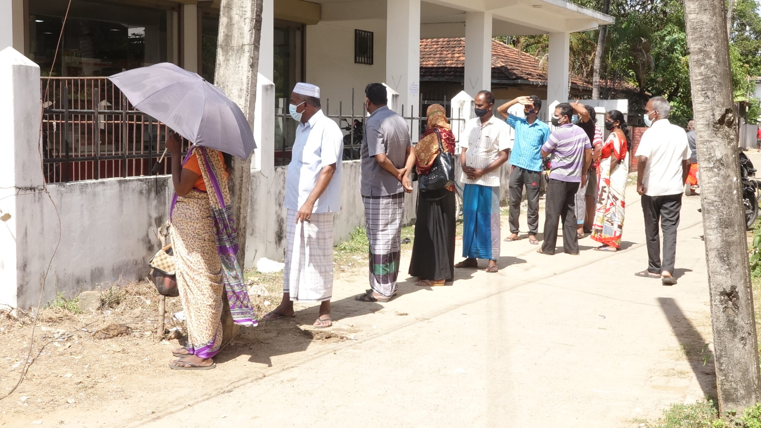 இதேநரம் நீண்ட நேரம் வெயிலின் மத்தியில் நின்ற மக்கள் விரக்தி அடைந்த நிலையில் தங்களை சதோச அருகில் உள்ள வாகன தரிப்பிட கட்டடத்தின் கீழவாது நிறுத்தி வைக்காமல் வீதியின் ஓரத்தில் காத்திருக்க வைப்பதாகவும் கவலை வெளியிட்டனர்.