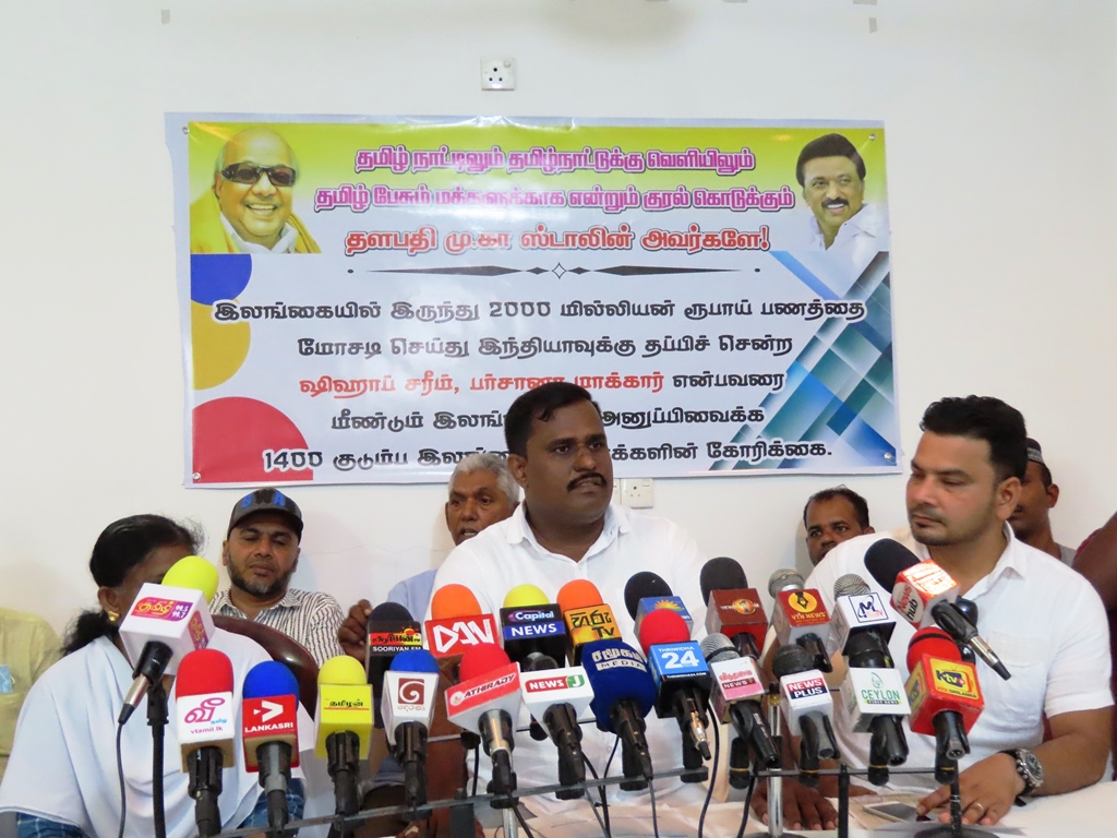 தொடர்ந்து கருத்து தெரிவித்த அவர் ”தமிழ் நாட்டிலும் தமிழ் நாட்டிற்கு வெளியிலும் எமக்காக குரல் கொடுத்து கொண்டிருக்கின்ற தளபதி மு.க.ஸ்டாலின் அவர்களே எமது நாட்டில் தமிழ் பேசும் மாகாணமான கிழக்கு மாகாணத்தில் பிரிவேல்த் குளோபல் நிதி நிறுவனம் என்ற பெயரில் 200 கோடி ரூபாவினை மோசடி செய்து கடல் மார்க்கமாக சட்டவிசோதமாக உங்கள் நாட்டிற்கு தப்பி ஓடிவந்து தற்போது திருச்சி சிறைச்சாலையில் அடைக்கப்பட்டுள்ள சிஹாப் சரீப் மற்றும் அவரது மனைவி பர்சானா மார்க்கார் இருவரும் தற்போது சிறையில் உள்ளார்கள்.