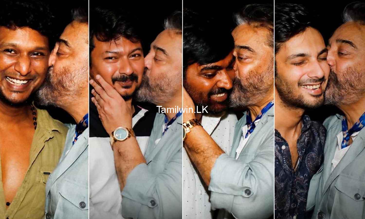 இந்த விழாவில் நடிகர் கமல்ஹாசன் படக்குழுவினரான இயக்குனர் லோகேஷ் கனகராஜ், உதயநிதி ஸ்டாலின், விஜய் சேதுபதி, அனிருத் ஆகியோருக்கு முத்தம் ஒன்றை அன்பு பரிசாக வழங்கினார்.