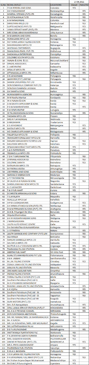 லங்கா ஐஓசி நிறுவனம் எரிபொருள் விநியோகம் செய்யப்பட்டுள்ள எரிபொருள் நிலையங்கள் தொடர்பான பட்டியலை வெளியிட்டுள்ளது.