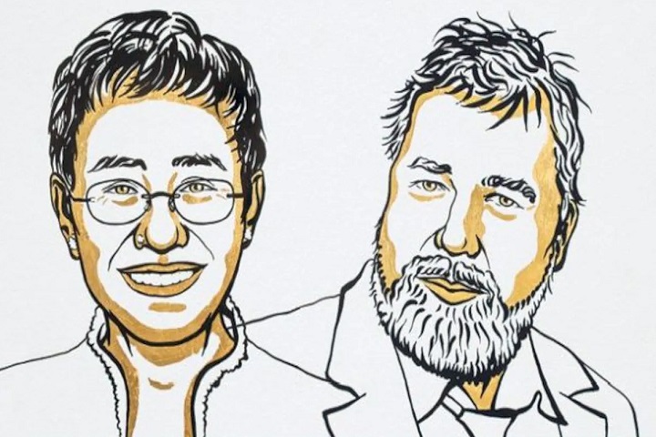 பிலிப்பைன்ஸை சேர்ந்த ஊடகவியலாளர் மரியா ரெஸாவும் ரஷ்ய ஊடகவியலாளர் டிமித்ரி முராடோவும் இந்த ஆண்டின் அமைதிக்கான நோபல் பரிசுக்குத் தேர்ந்தெடுக்கப்பட்டுள்ளனர்.
