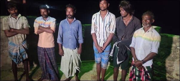 தமிழ்நாடு, ராமேஸ்வரத்திலிருந்து இலங்கை கடற்பறப்பிற்குள் நுழைந்து அத்துமீறி மீன் பிடியில் ஈடுபட்ட 6 மீனவர்கள் இலங்கை கடற்படையினரால் கைது செய்யப்பட்டுள்ளனர்.