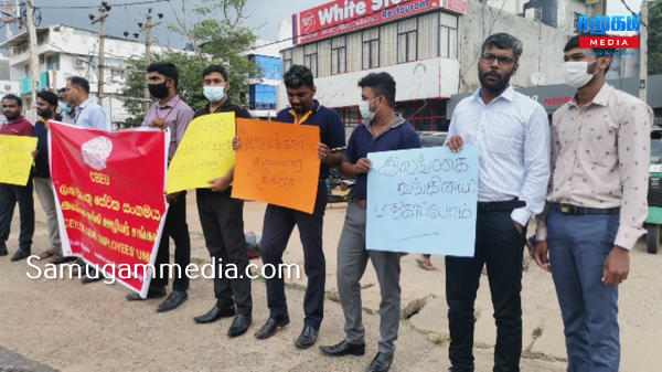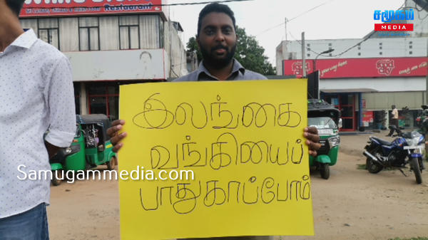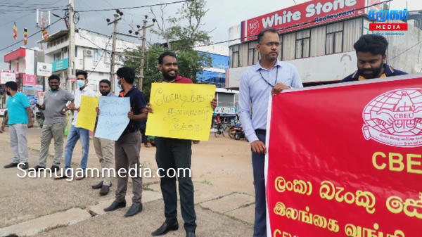 குறித்த ஆர்ப்பாட்டத்தினை இலங்கை வங்கி ஊழியர் சங்கத்தின் ஏற்பாட்டில் அரச வங்கிகள் மற்றும் தனியார் வங்கிகள் ஒன்றிணைந்து முன்னெடுத்திருந்தனர்.